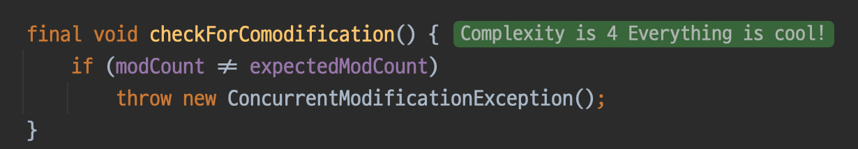 안으로 들어가 살펴보면 modCount와 expectedModCount의 값을 비교하여 다르면 예외를 터트린다