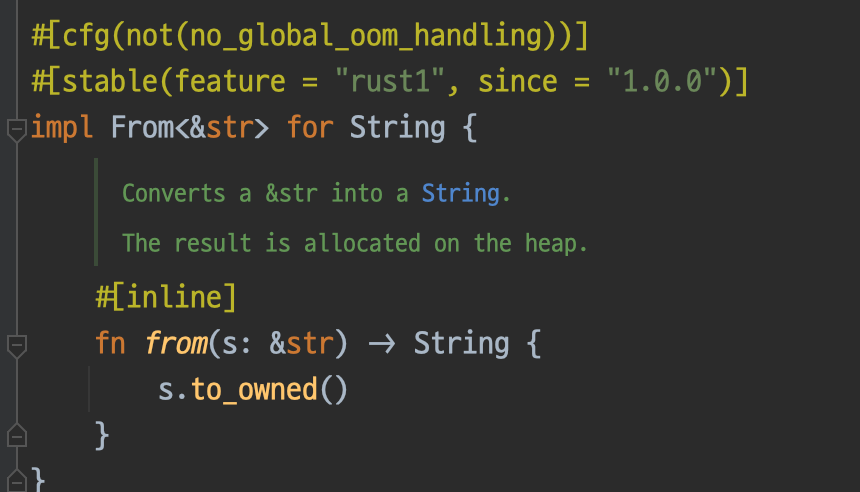 rust의 String::from 사용에 관한 주석인데 &str 타입이 String 타입으로 변환된다는 것을 설명하고
