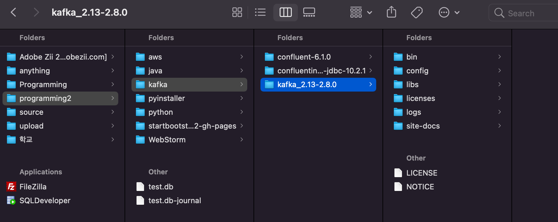 그래도 안 풀려서 실행하는 경로라도 바꿔보자 싶어서 기존에는 kafka_2.13-2.8.0 폴더 안에서