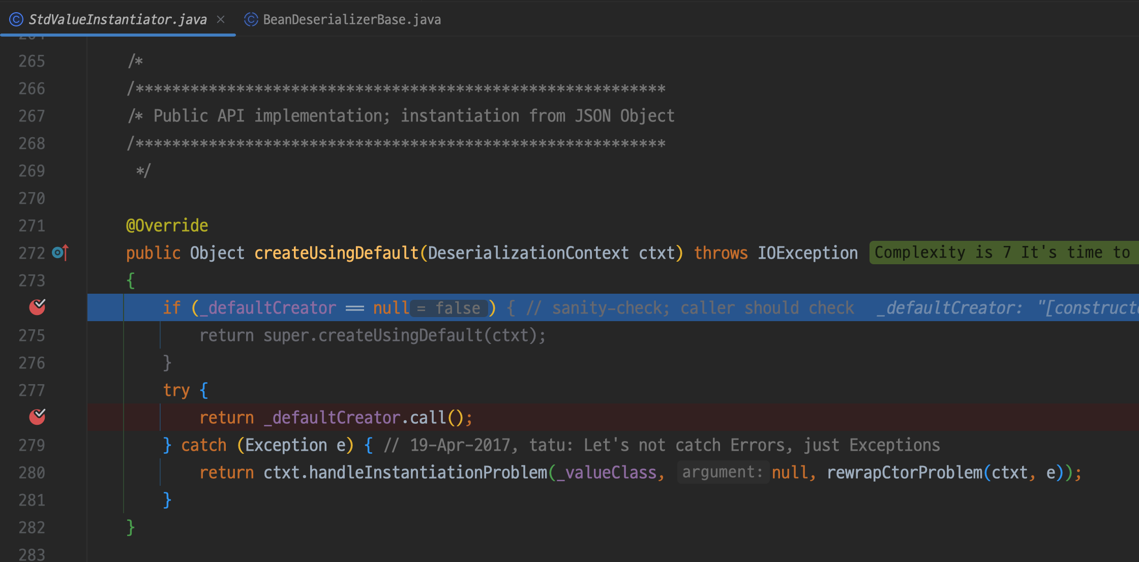 메서드 이름 그대로 default 생성자가 있는지 확인하여 없다면 super.createUsingDefault(ctxt)를 이용해