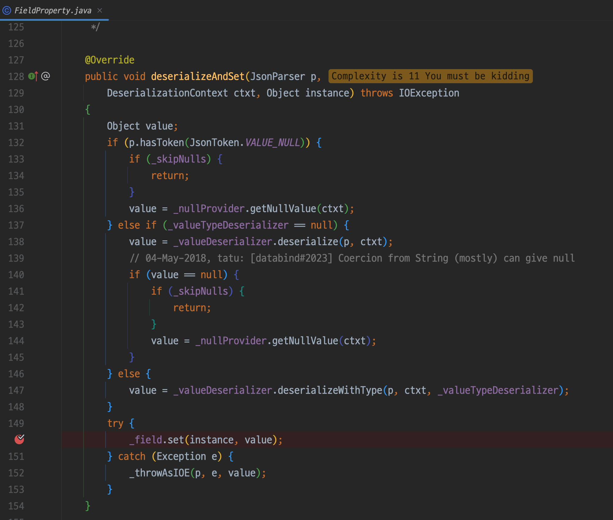 이후 deserializeFromObject 메서드로 돌아와 객체에서 필드 수만큼 반복문을 돌며