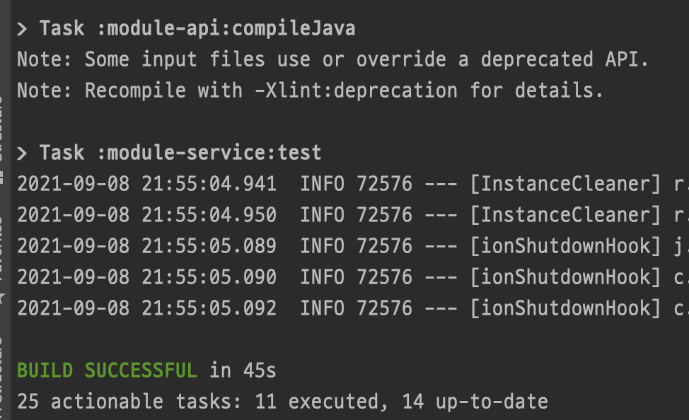 일반적으로 테스트 코드 작성 후 돌려볼 때는 ./gradlew test --parallel로 더 가볍게 실행 가능하며 20s ~ 1m 수행 시간