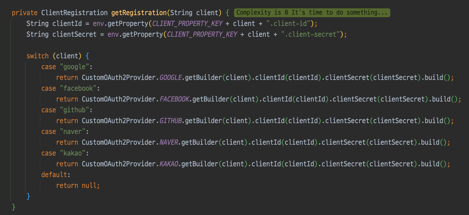 아래 코드도 OAuth2 관련 예제들에서 if 문을 덕지덕지 발라놔서 보기 싫어 수정을 거친 것인데