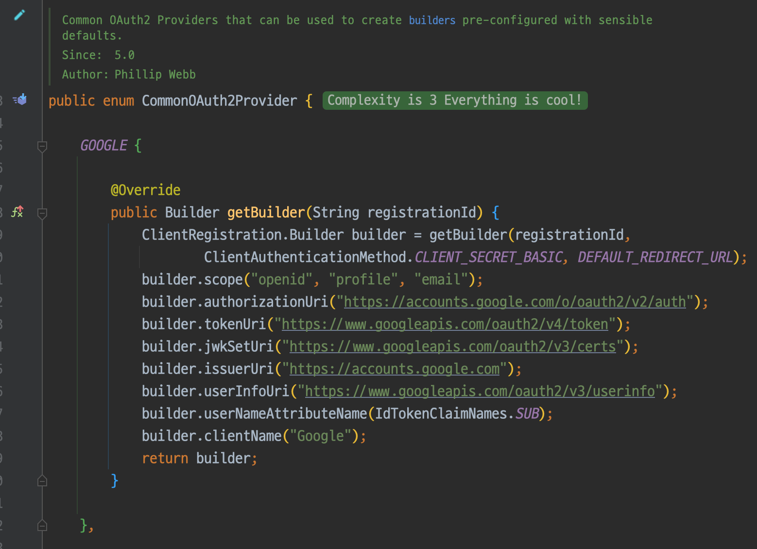 아래 사진은 Spring Security가 제공하는 CommonOAuth2Provider다