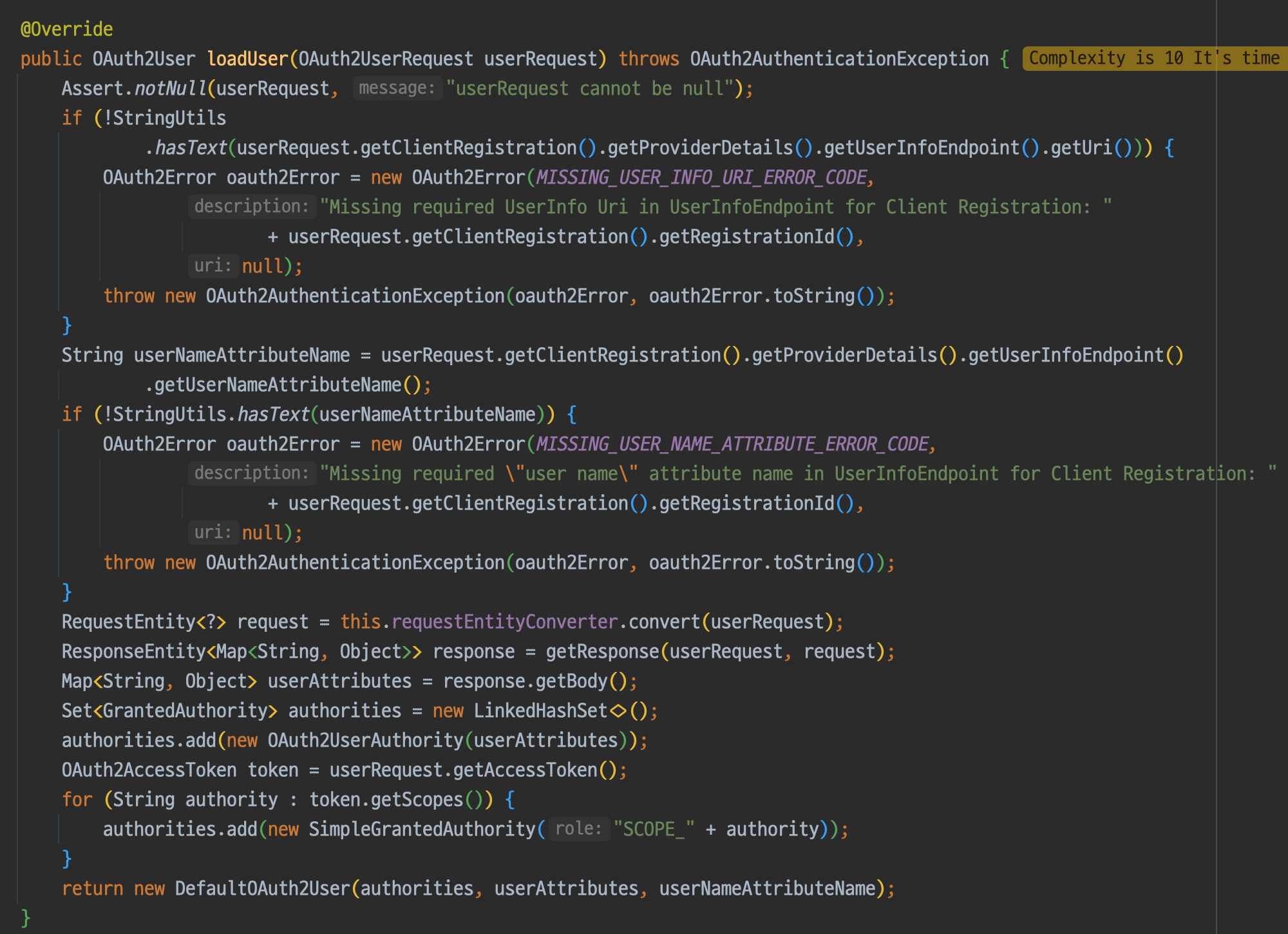public OAuth2User loadUser(OAuth2UserRequest oAuth2UserRequest) throws OAuth2AuthenticationException {