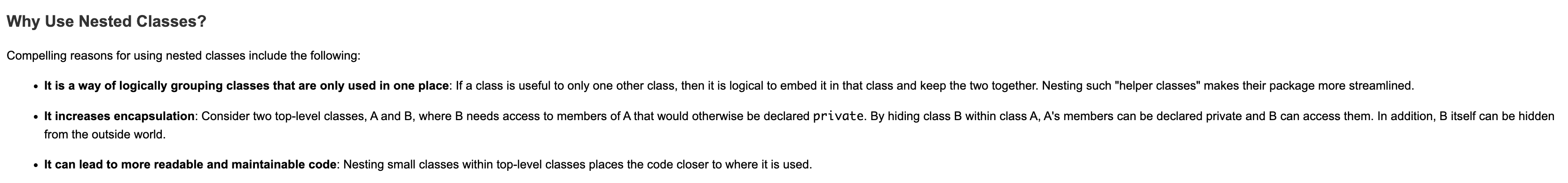 예를 들어 outer class에서 쓰일 상수 클래스가 있을 때, outer class 외에 쓰일 일이 전혀 없으면 top-level로 빼기엔 애매하다